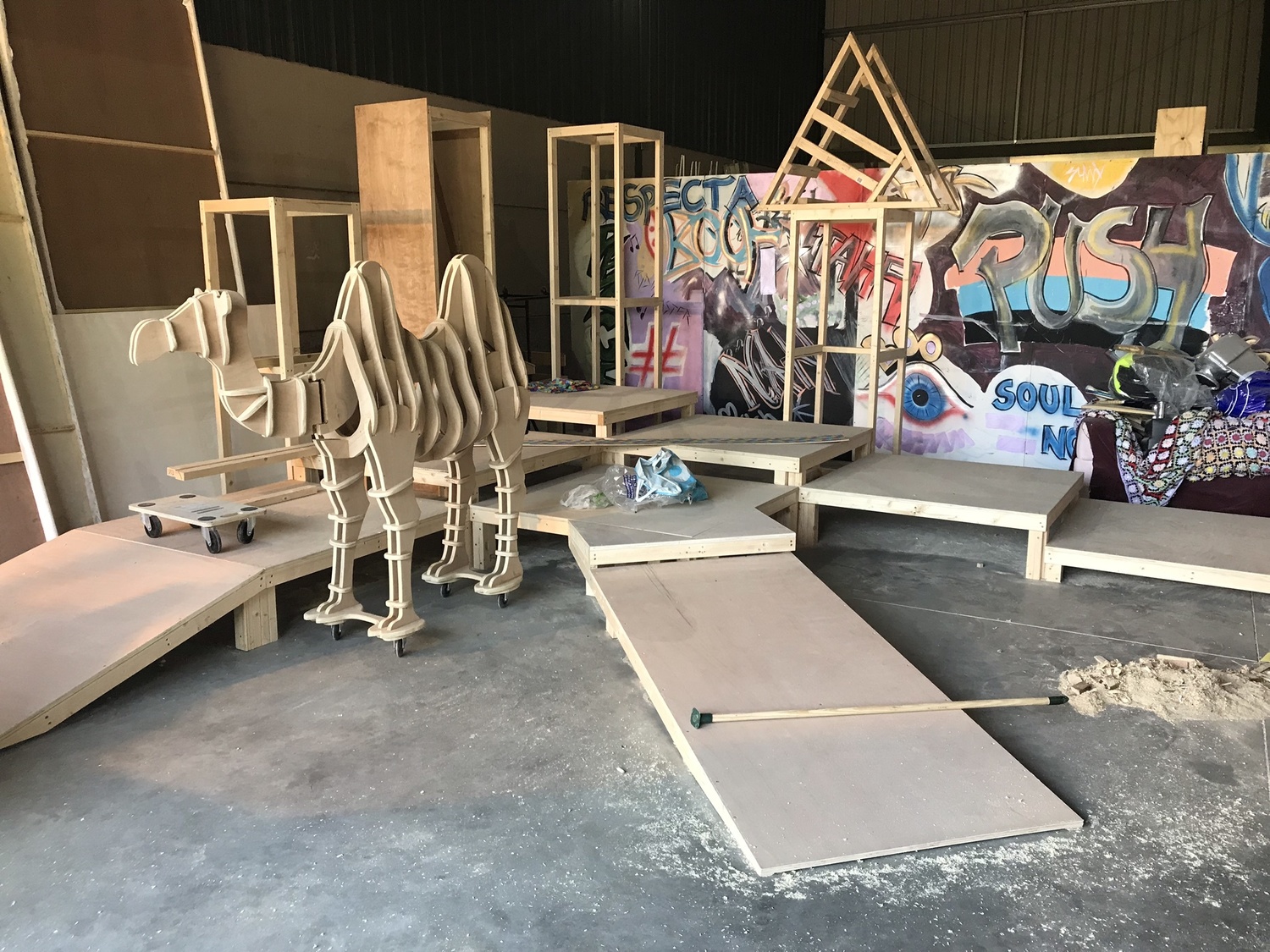 With the wealth of sets we’ve built and the inherent adaptability of design within them we can accommodate your show with ease. With hand-built modular staging and flats a-plenty, talk to us about what you need and we’ll put you a package together.