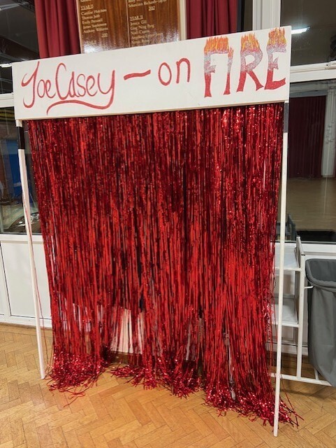 - "Joe Casey on fire" Glitter Curtain