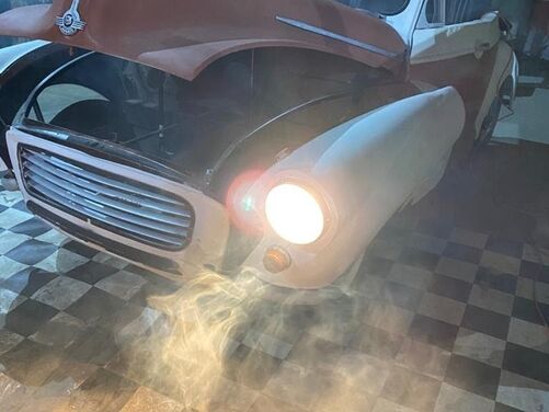 - Full Size "Morris Minor" | (Bonnet and Wings Fall out for Breakdown & Space inside for Smoke Machines) Approximately 3.1m by 1.545m