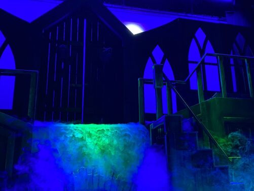 The set pieces can be hired individually or a package, can be put together to fulfill your every (gothic) desire. The large and medium set show packages come with all small props and set pieces, the small set show package does not include the x2 dining tables.